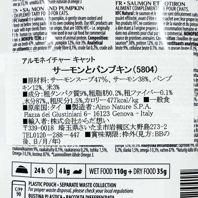 最短賞味2027.4・リニューアル品アルモネイチャー 猫 パウチ サーモンとパンプキン55g alc5804成猫用ウェット一般食キャットフードalmo nature正規品 [alc5804]