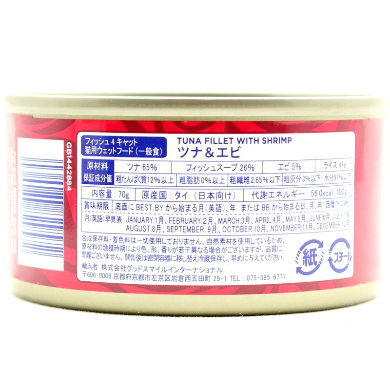 - > 最短賞味2028.3・フィッシュ4キャット 猫缶「ツナ&エビ」 70g缶 全年齢猫用キャットフード ウェット正規品f4c29572