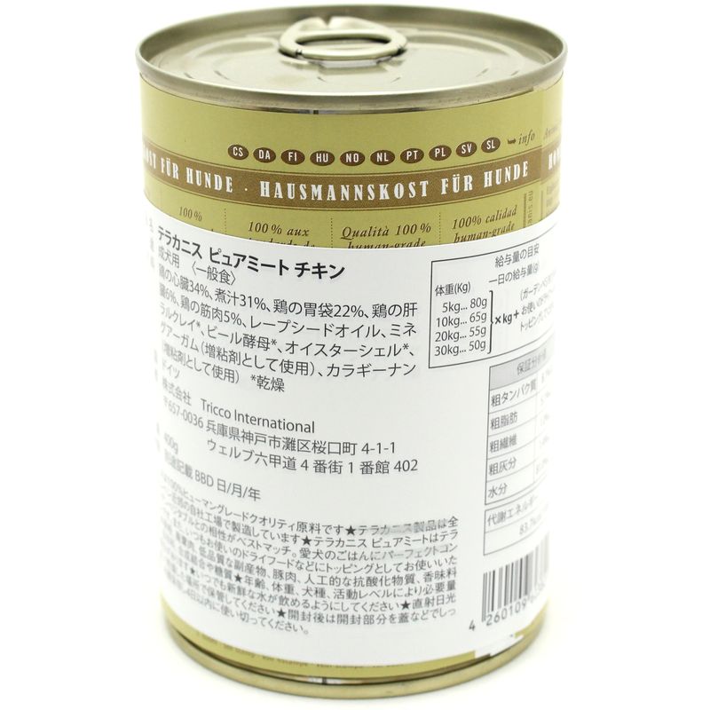 - > 最短賞味2028.6・テラカニス 犬用 ピュアミート チキン 400g缶 一般食 ドッグフード TerraCanis 正規品