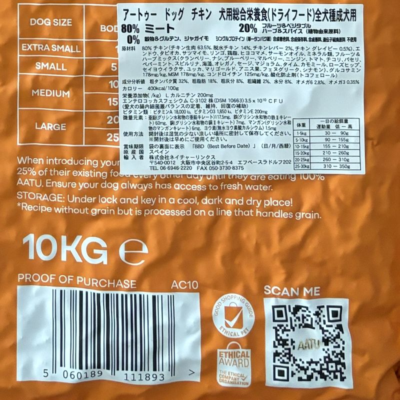 おまけ付き!最短賞味2027.1.22・リニューアル品アートゥー チキン 10kg犬用ドライ穀物不使用ドッグフードAATU正規品aa11893