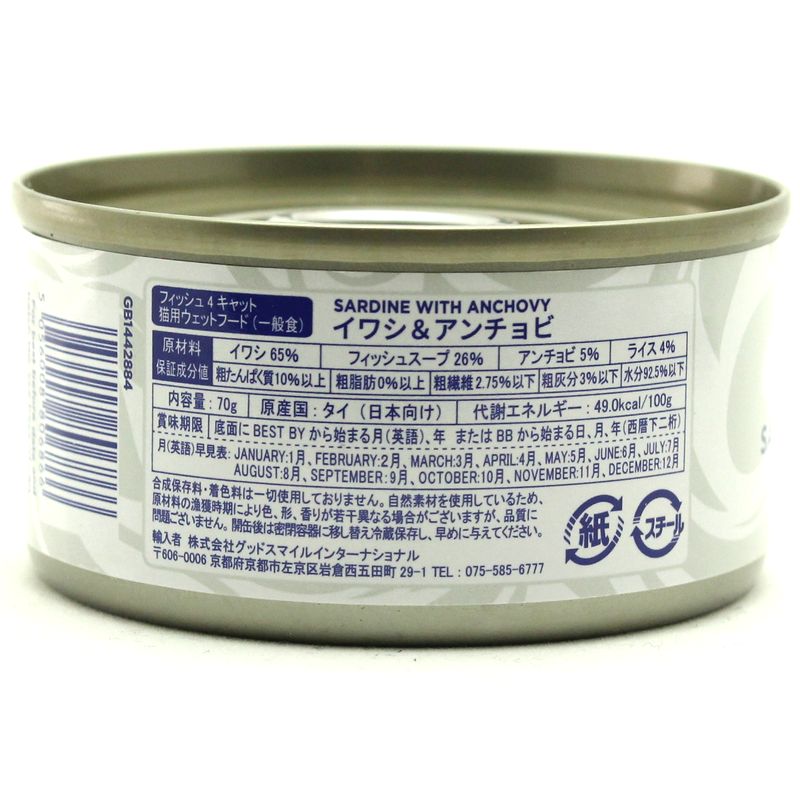 - > 最短賞味2028.3・フィッシュ4キャット 猫缶「イワシ&アンチョビ」 70g缶 全年齢猫用ウェット一般食FISH4CATS正規品f4c06866