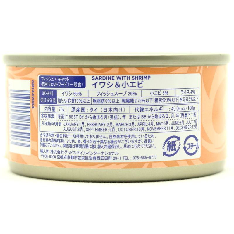 - > 最短賞味2028.3・フィッシュ4キャット 猫缶「イワシ&小エビ」 70g缶 全猫種 全年齢対応ウェット 一般食 fish4cats 正規品 f4c06903
