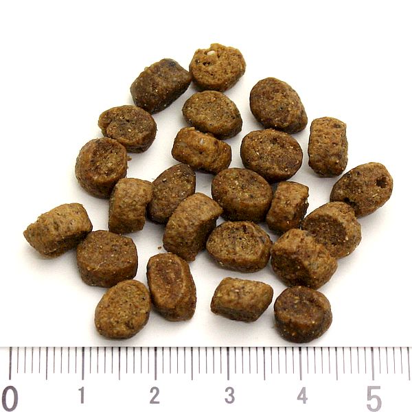 【その他】ビタミンA 17500 IU / kg、ビタミンD3 750 IU / kg、ビタミンE 300 mg / kg、ビタミンB1 12 mg / kg、ビタミンB2 14 mg / kg、ビタミンB6 12 mg / kg、ビタミンB 12 0.15 mg / kg、ビタミンK 3 1 mg / kg、葉酸 1mg / kg、D-パントテン酸カルシウム 20mg / kg、ビオチン 0.5mg / kg、ナイアシン 25 mg / kg、塩化コリン 2730 mg / kg、タウリン720 mg / kg、銅4.78 mg / kg(硫酸銅 15.96 mg / kg、キレート銅 16.87 mg / kg)、ヨウ素 1.07 mg / kg(ヨウ素酸カルシウム 1.64 mg / kg)、亜鉛 52.5 mg / kg(硫酸亜鉛 125.74 mg / kg、キレート亜鉛 151.37 mg / kg)、マンガン 6.71 mg / kg(硫酸マンガン 20.67 mg / kg)、セレン 0.03 mg / kg(有機セレン 11.38 mg / kg)
