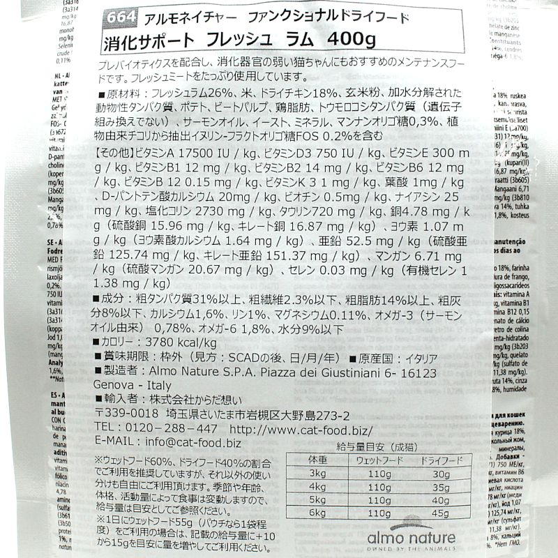 - > 最短賞味2027.4.30・アルモネイチャー 猫 ドライ 消化サポート フレッシュラム 400g alc664キャットフード 正規品
