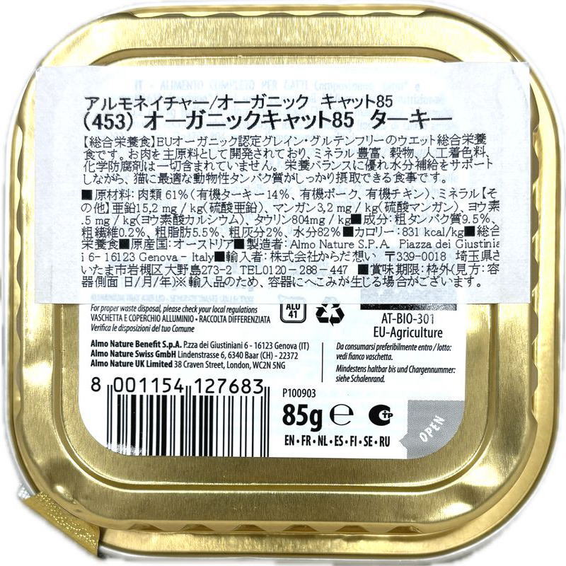 最短賞味2027.1・アルモネイチャー 猫 オーガニックキャット85 ターキー85g alc453ウェット総合栄養食 almo nature正規品