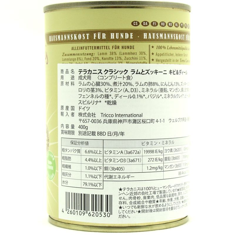 最短賞味2028.6・テラカニス 犬 Classic ラムとズッキーニ キビ&ディール400g缶 TerraCanis正規品tc20530 [tc20530]