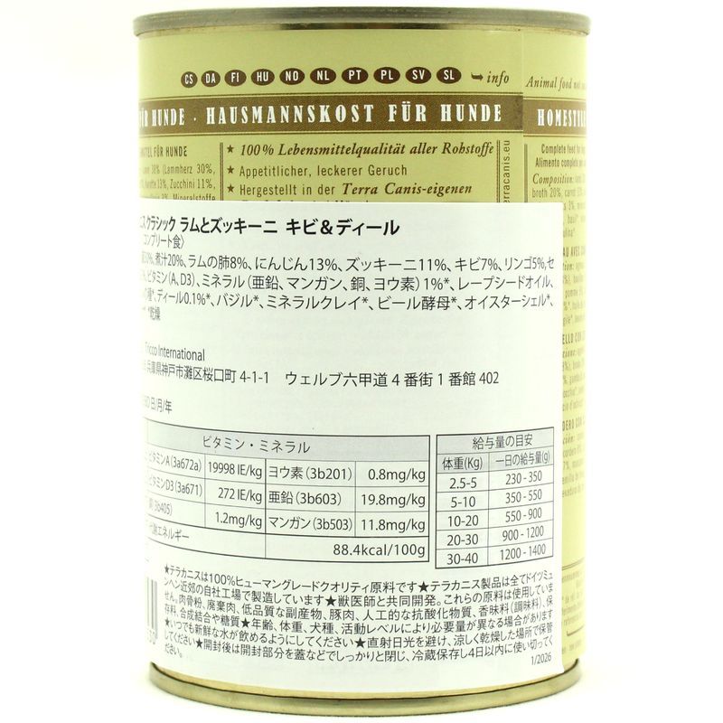 - > 最短賞味2028.6・テラカニス 犬 Classic ラムとズッキーニ キビ&ディール400g缶 TerraCanis正規品tc20530