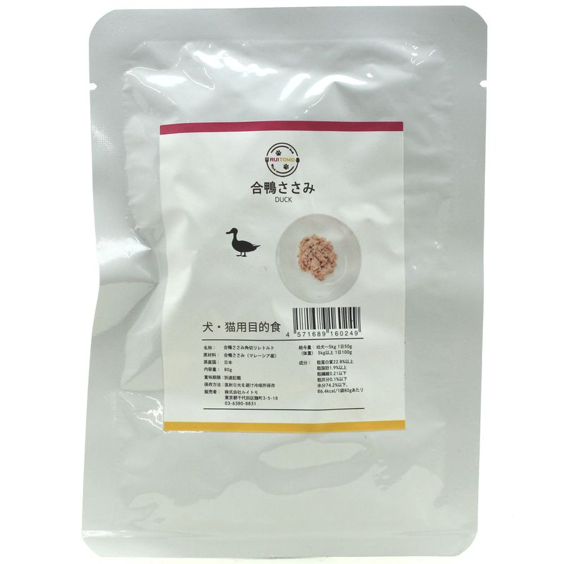 最短賞味2027.11・ルイトモ 合鴨肉ささみ角切りレトルト80g 犬猫用トッピング 無添加 国産rui60249 [rui60249]