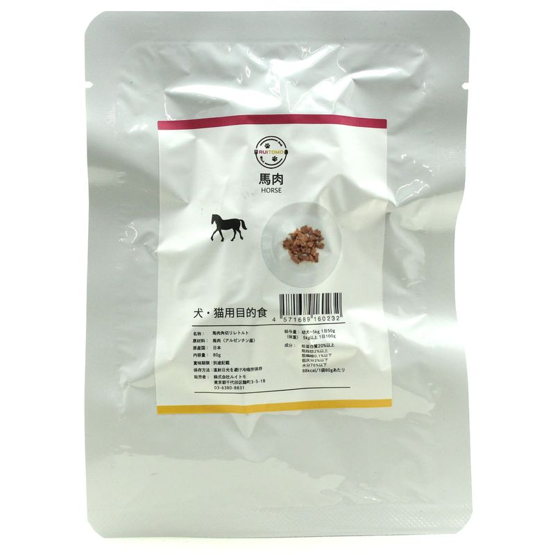 最短賞味2027.11・ルイトモ 馬肉角切り(レトルト) 80g 犬猫用トッピング VACEL ナチュラルサプリミート 無添加 国産 rui60232