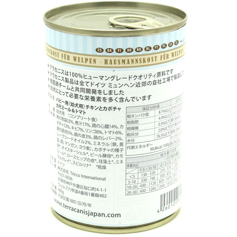- > 最短賞味2028.6・テラカニス 犬 パピー チキンとカボチャ400g缶コンプリート食TerraCanis正規品tc20684