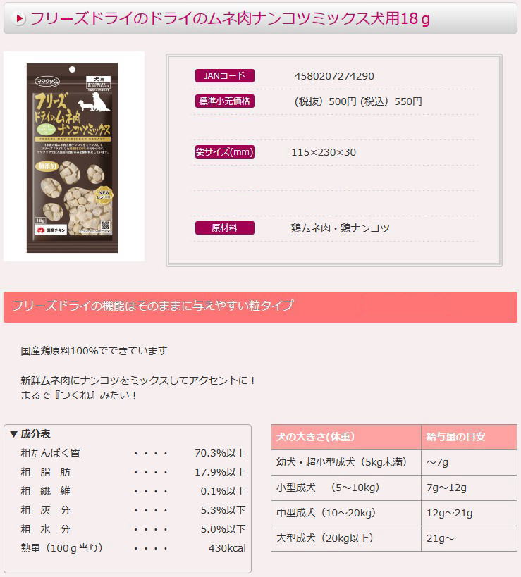 最短賞味2026.8・リニューアル品ママクック 犬 フリーズドライのムネ肉ナンコツミックス犬用18g犬用おやつトッピングmom74290 [mom74290]