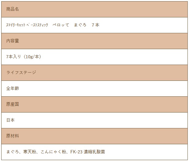 原材料:まぐろ、寒天粉、こんにゃく粉、FK-23 濃縮乳酸菌