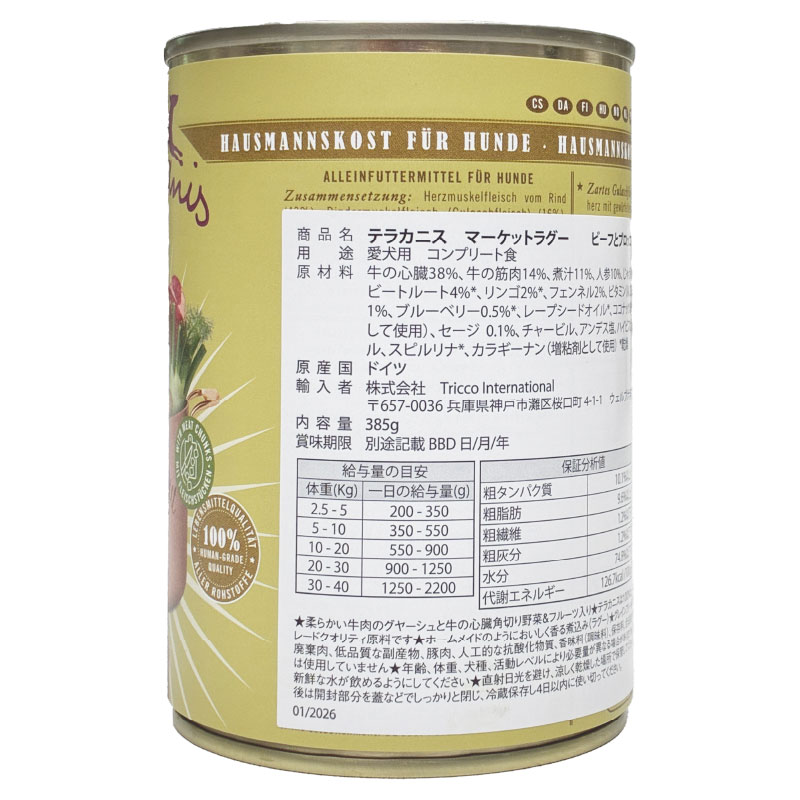 最短賞味2028.5・テラカニス 犬 マーケットラグー ビーフ 385g缶 コンプリート食ドッグフードTerraCanis正規品tc70034 [tc70034]
