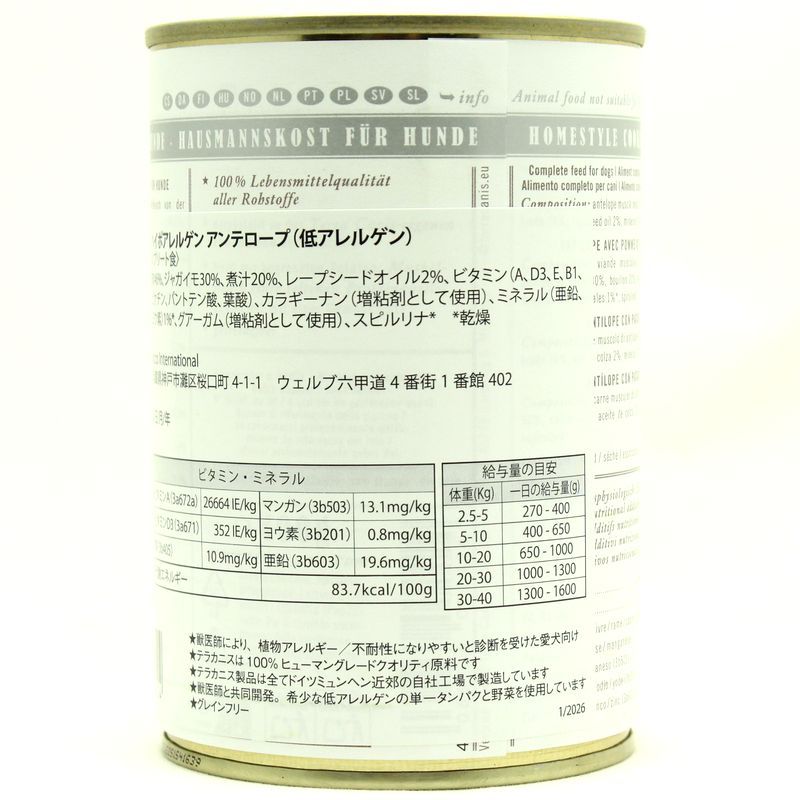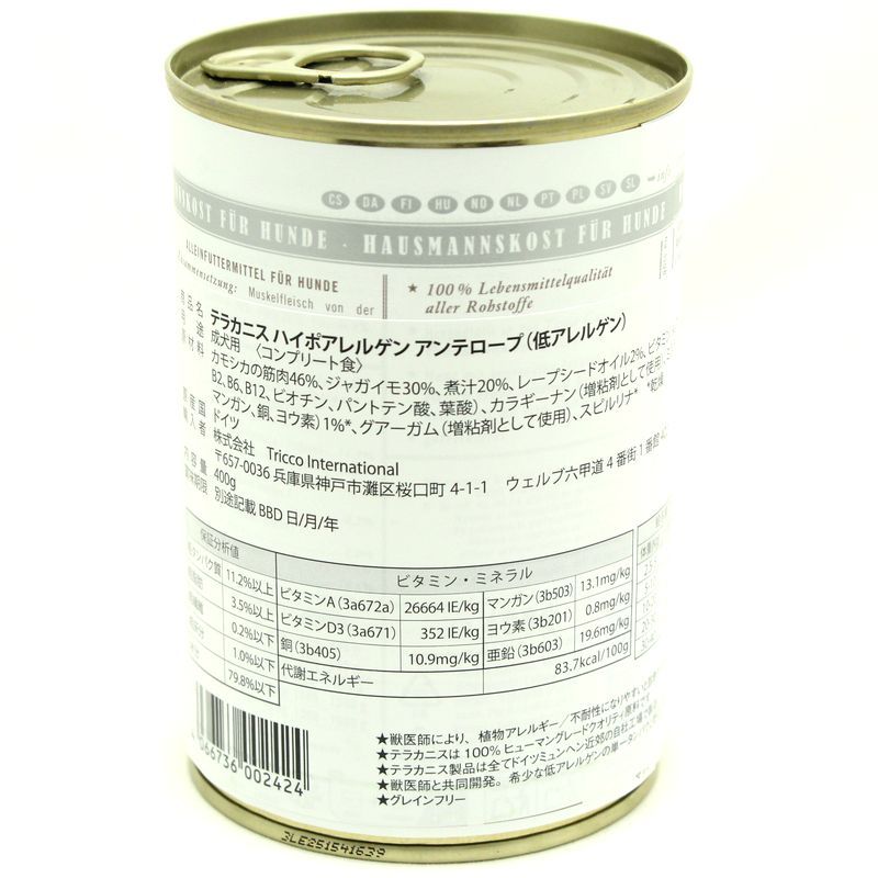 - > 最短賞味2028.6・テラカニス 犬 アンテロープ ハイポアレルゲン 400g缶コンプリート食 低アレルギーTerraCanis正規品tc02424