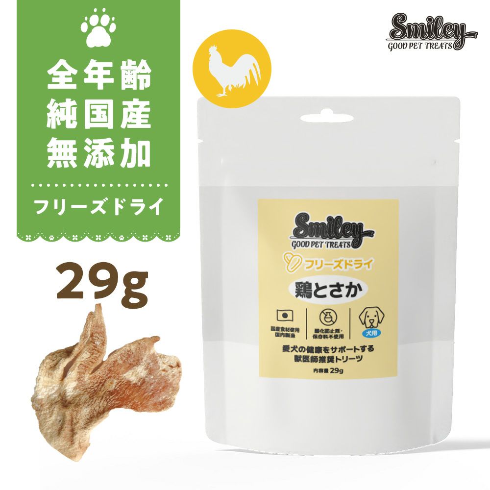 最短賞味2027.5・リニューアル品Smiley (スマイリー) フリーズドライ 鶏とさか 29g全年齢犬用おやつ 国産無添加sm34498