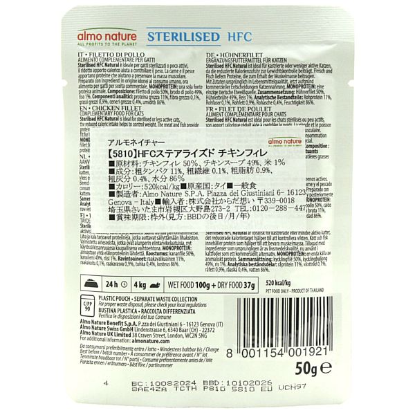 最短賞味2026.10・アルモネイチャー 猫 HFCステアライズド チキンフィレ50gパウチalc5810成猫シニア猫用一般食 正規品 [alc5810]