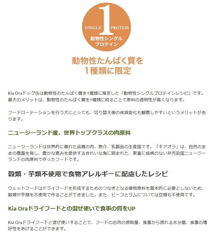 Kia Oraドッグ缶へのこだわり「動物性シングルプロテイン」