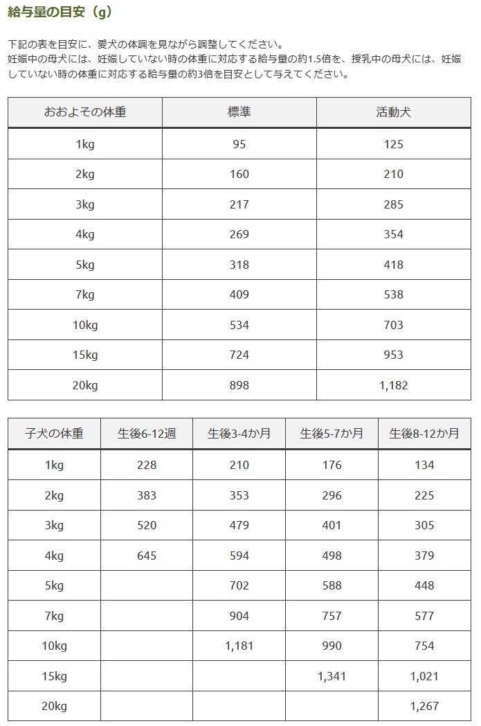 本品は、ペットフード公正取引協議会が定める分析試験により、幼犬、成長期の犬、妊娠犬・授乳犬に適したバランスの良い総合栄養食の基準を満たすことが証明されています。