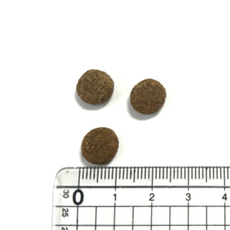 分析値:タンパク質37%、脂肪11%、粗繊維6.2%、粗灰分8.8%、水分7%、カルシウム1.5%、リン1.2%、オメガ3脂肪酸0.33%、タウリン3.15g/kg