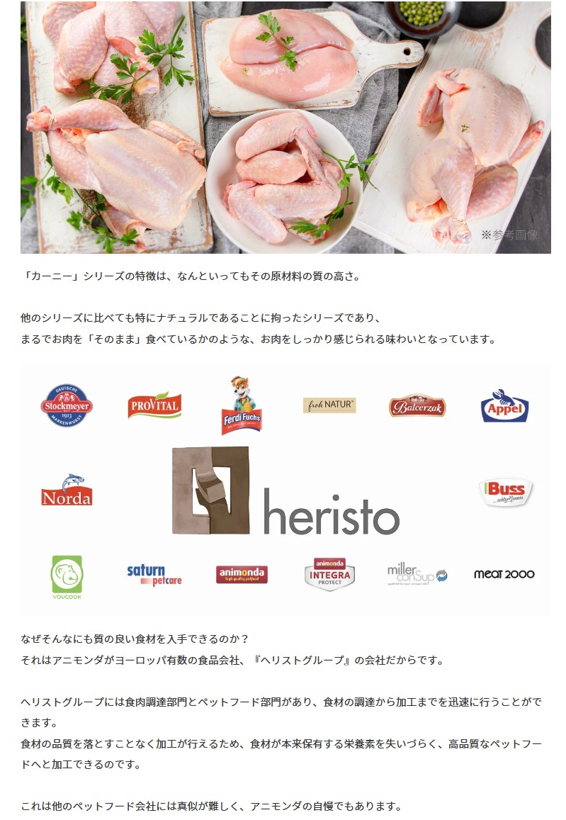 「カーニー」のシリーズは、新鮮な肉を素早く丁寧に加工処理しているため、肉に含まれる栄養素を保つことができます。