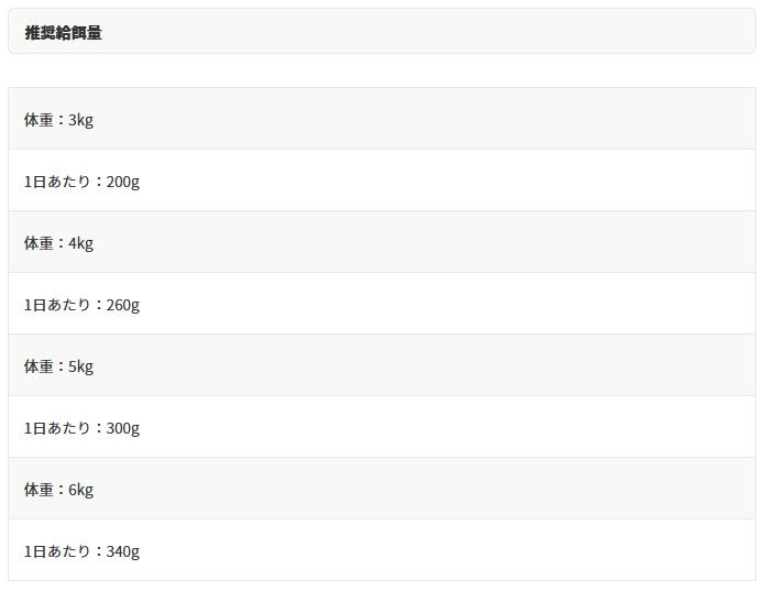 体重:3kg 1日あたり:200g