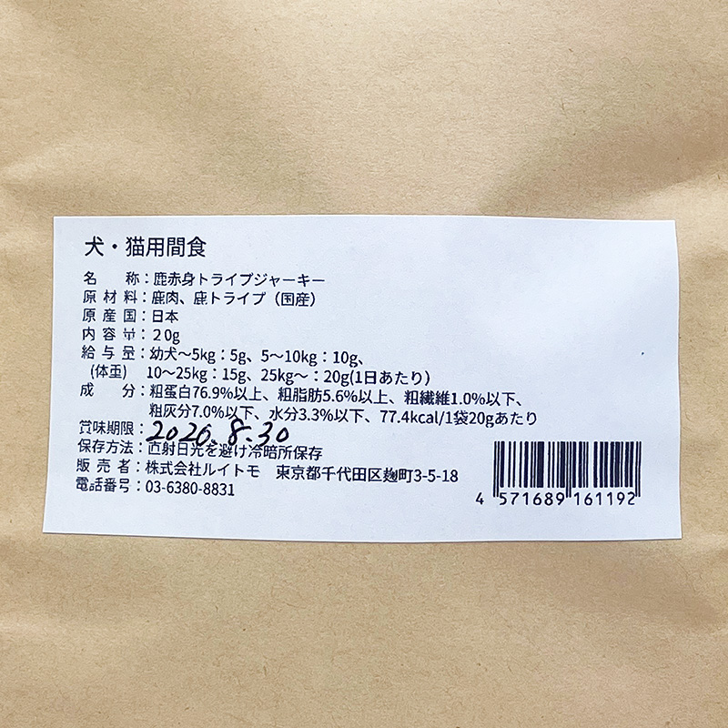 原材料:鹿肉、鹿赤身トライプ(国産)