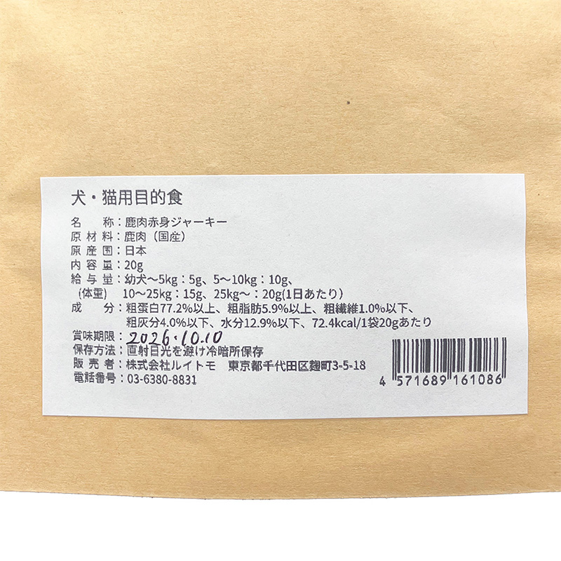 NEW 最短賞味2026.10・ルイトモ 鹿肉赤身ジャーキー20g/rui61086犬猫用おやつ ナチュラルサプリミート