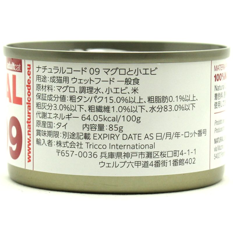 NEW 最短賞味2028.12・ナチュラルコード 猫 NC09 マグロと小エビ 24缶セットnco53090成猫用一般食 正規品/SALE [nco53090s24]