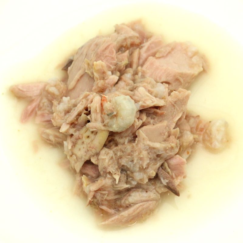 マグロと小エビでタンパク質とミネラル、必須脂肪酸を補給、消化しやすい少量の米を配合したフレークタイプのレシピです。