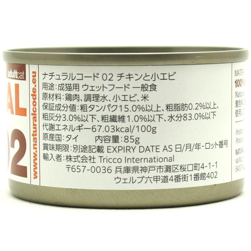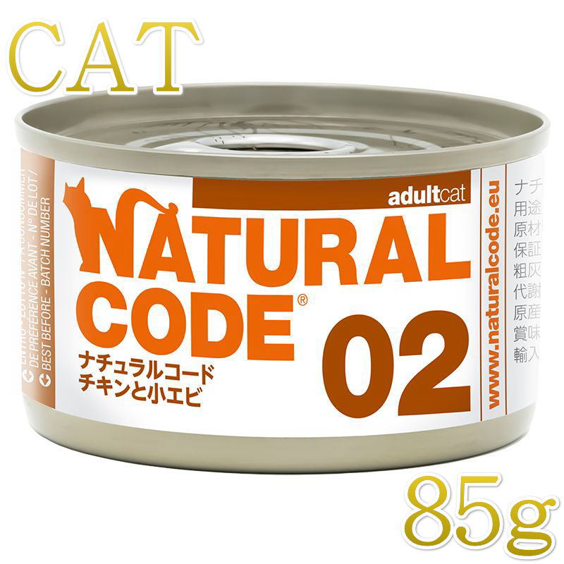 - > NEW 最短賞味2028.12・ナチュラルコード 猫 NC02 チキンと小エビ 85g缶nco53410成猫用一般食 正規品/SALE