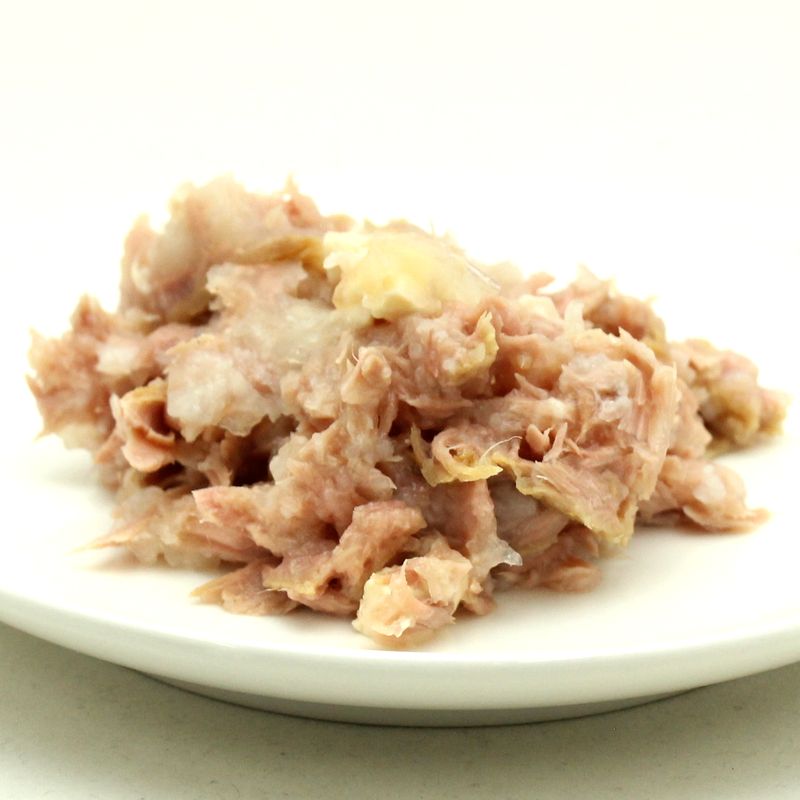 マグロとチーズでタンパク質、オメガ3脂肪酸、カルシウムを補給し、消化しやすい少量の米を配合したフレークタイプのレシピです。