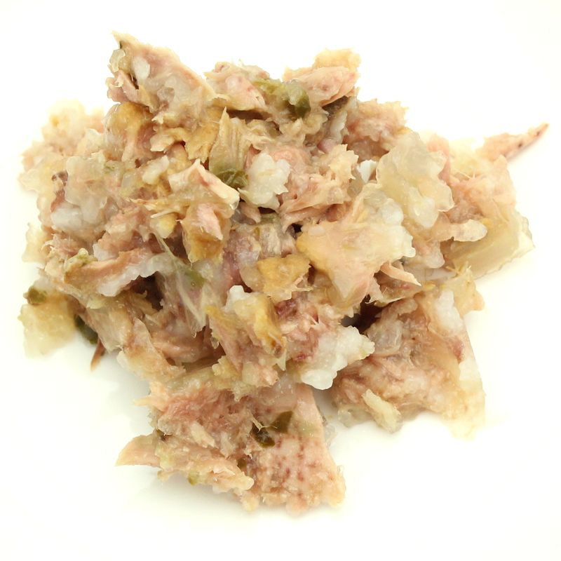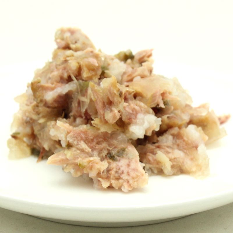 マグロと鯛にリンゴを加えることでミネラル、食物繊維をバランスよく配合、嗜好性と水分補給に配慮したジュレ仕立てのレシピです。
