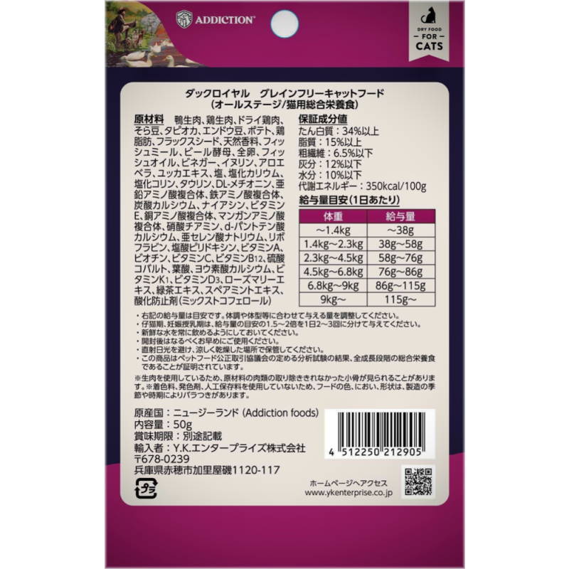 NEW 最短賞味2027.9.19・アディクション 猫 ダックロイヤル 50g全年齢猫用 有料サンプル正規品adc12905 [adc12905]