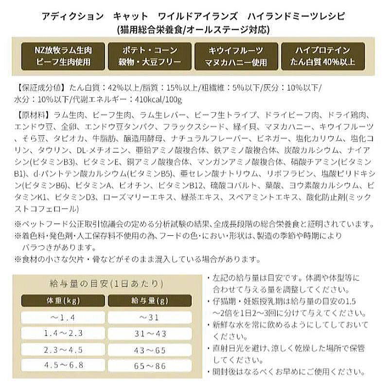 - > NEW 最短賞味2027.5.9・アディクション 猫 ワイルドアイランズ キャット ハイランドミーツ50g成猫用 有料サンプル正規品adc12209