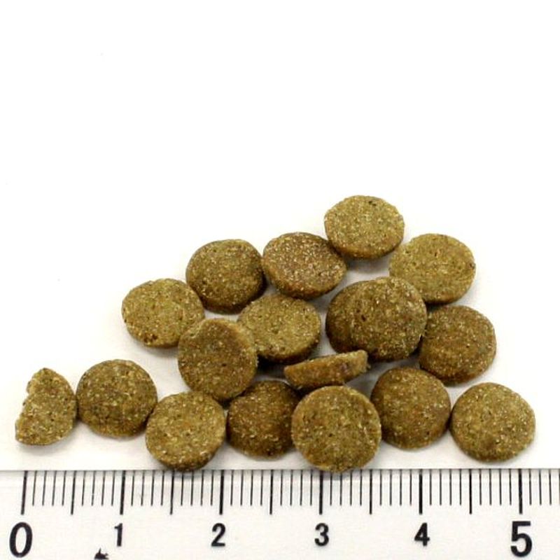 保証成分値:たん白質 45%以上、脂質 15%以上、繊維 5%以下、灰分 10%、水分 10%以下