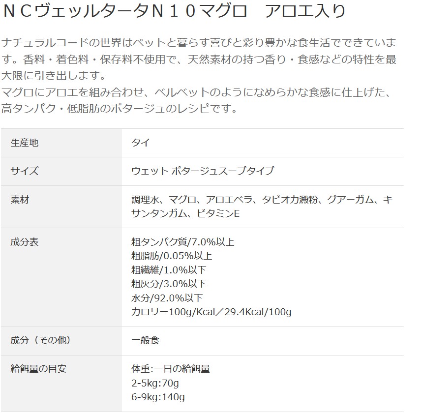 - > NEW 最短賞味2029.1・ナチュラルコード 猫 NCヴェッルタータN10マグロ アロエ入り 24缶セットnco51973成猫用一般食 正規品/SALE