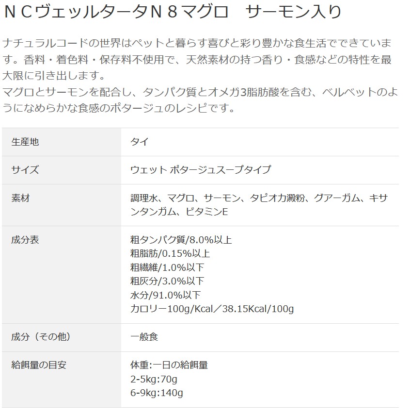 - > NEW 最短賞味2029.1・ナチュラルコード 猫 NCヴェッルタータN8マグロ サーモン入り 85g缶nco51959成猫用一般食 正規品/SALE