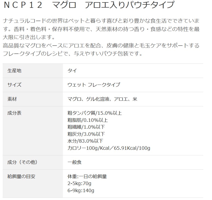 - > NEW 最短賞味2028.1・ナチュラルコード 猫 NCP12 マグロ アロエ入りパウチ24個セットnco52192s24成猫用一般食 正規品/SALE