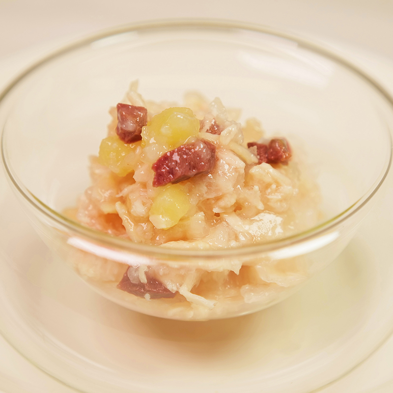 成分:粗タンパク質:16.0%以上、粗脂肪:0.30%以上、粗繊維:1.0%以下、粗灰分:3.0%以下、水分:82.0%以下