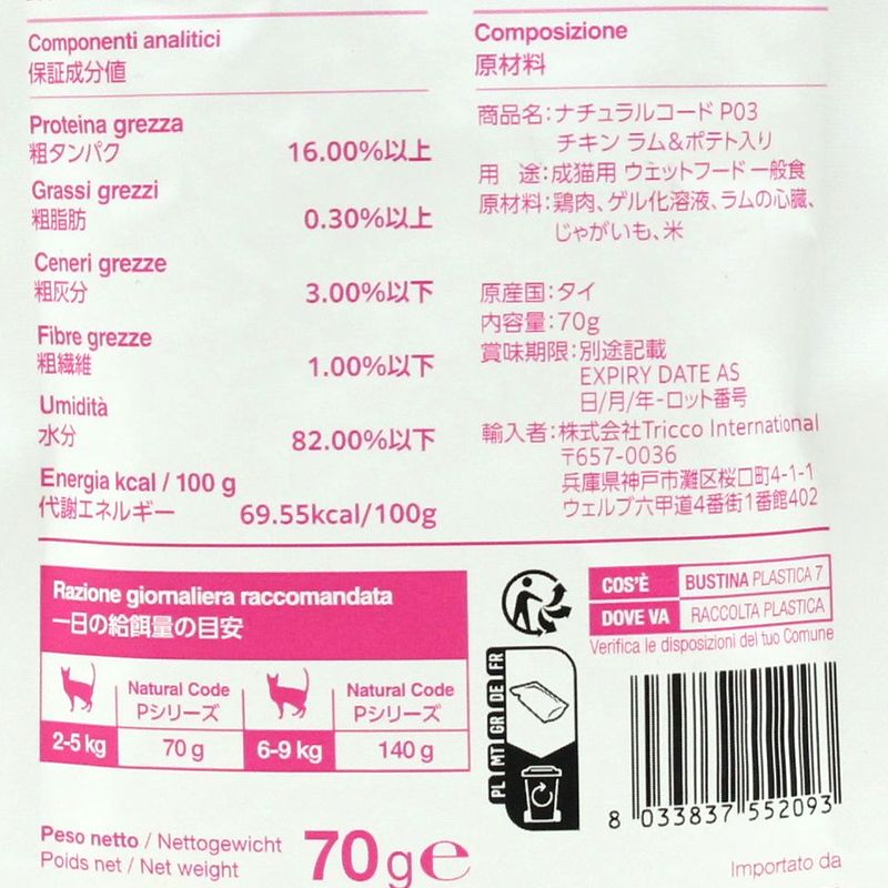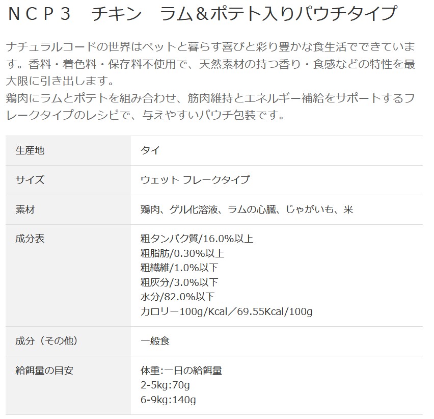 - > NEW 最短賞味2028.1・ナチュラルコード 猫 NCP3 チキン ラム&ポテト入りパウチ24個セットnco52093s24成猫用一般食 正規品/SALE