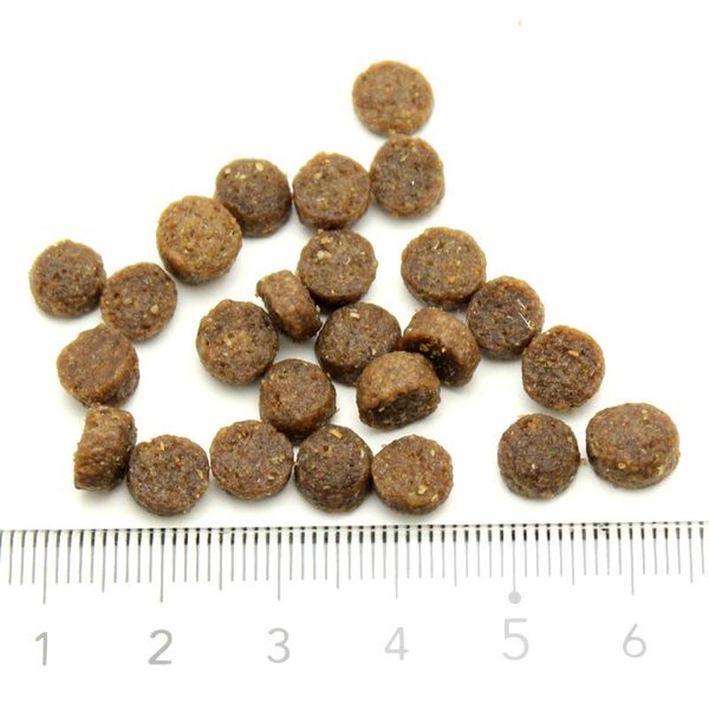 保証分析値:たんぱく質 25%以上、脂質 14%以上、粗繊維 5%以下、灰分 9.2%以下、水分 10%以下、カルシウム 1.5%以上、リン 0.8%以下