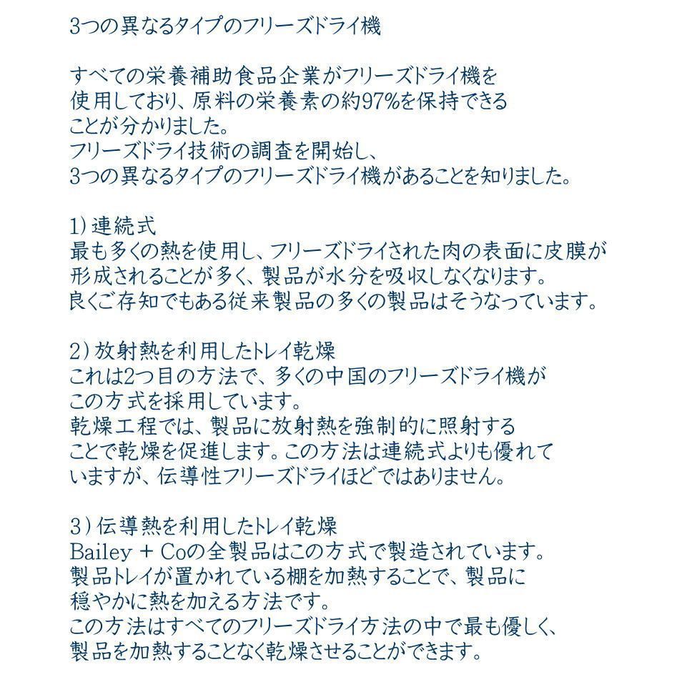 ベイリーコーは、伝導熱を利用したトレイ乾燥により、全てのフリーズドライ製法の中でも最もやさしく、栄養の残存率が高い良質のフリーズドライが作られています。