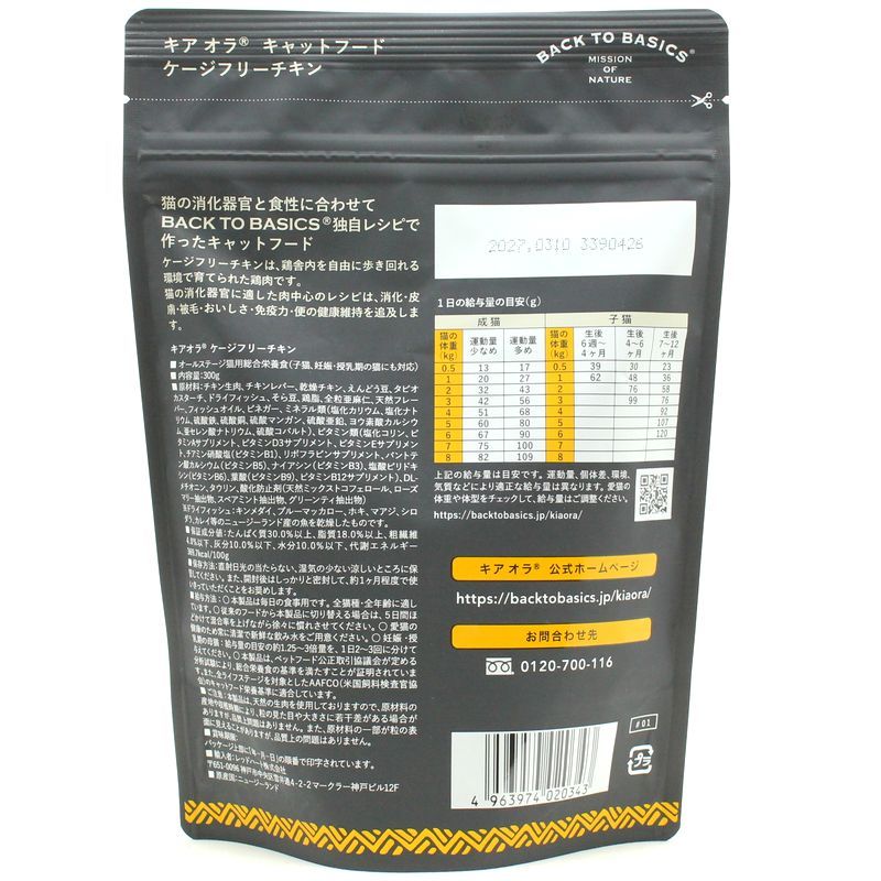 NEW 最短賞味2027.3.10・キアオラ 猫 ケージフリー チキン 300g 全年齢猫用ドライKiaora CAT正規品kia20343