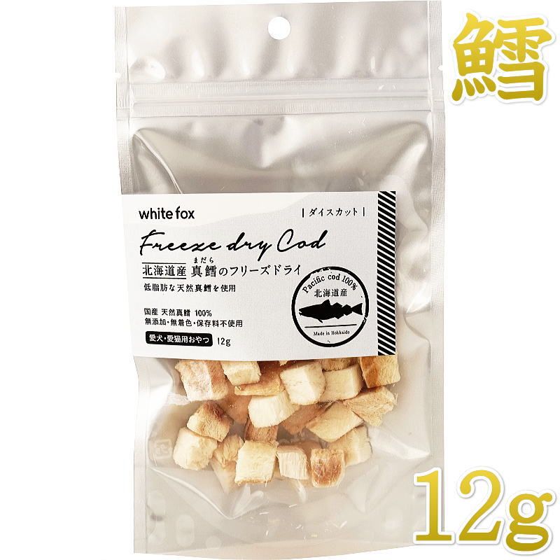 NEW 最短賞味2027.4・ホワイトフォックス 北海道産真鱈のフリーズドライ ダイスカット12g犬猫用おやつwf71134正規品
