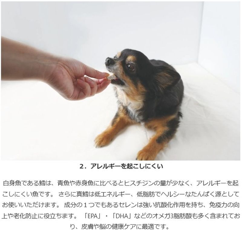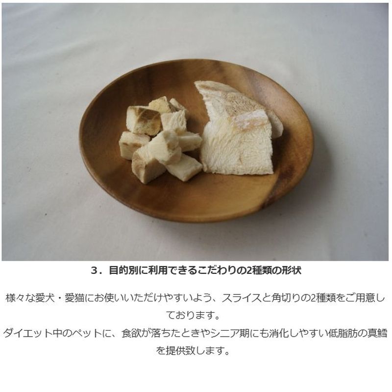 ダイエット中のペットに、食欲が落ちたときやシニア期にも消化しやすい低脂肪の真鱈を提供致します。