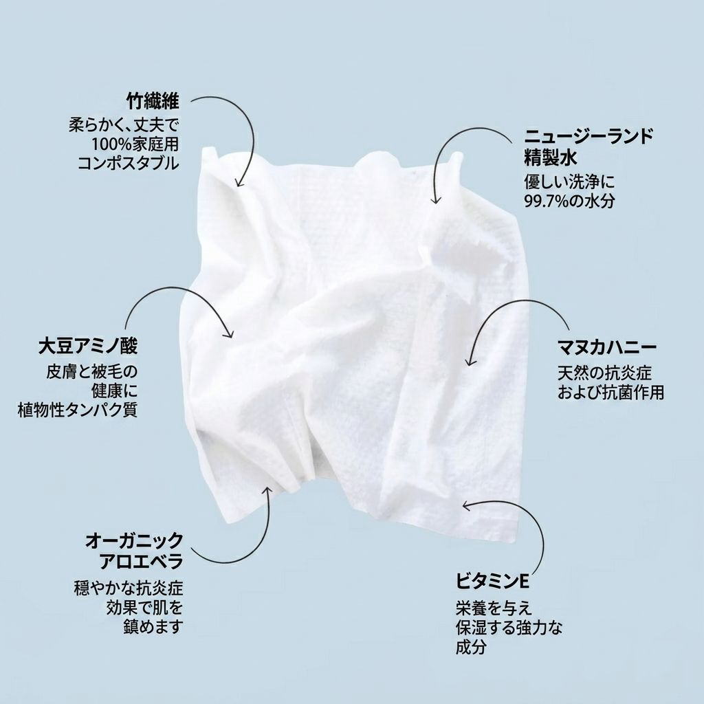 ニュージーランド製の誇り高き当社のワイプは、倫理的に調達され、100%植物由来で、ペットと地球にとって安全な選択肢です。