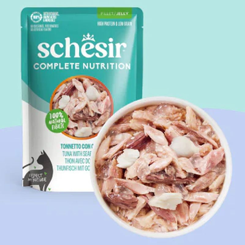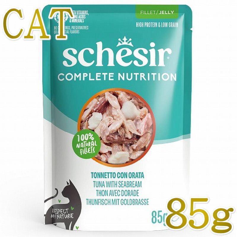 NEW 最短賞味2028.?・シシア 猫 ゼリータイプ パウチ ツナwithシーブリーム85g scc71122成猫用総合栄養食キャットフードSchesir正規品