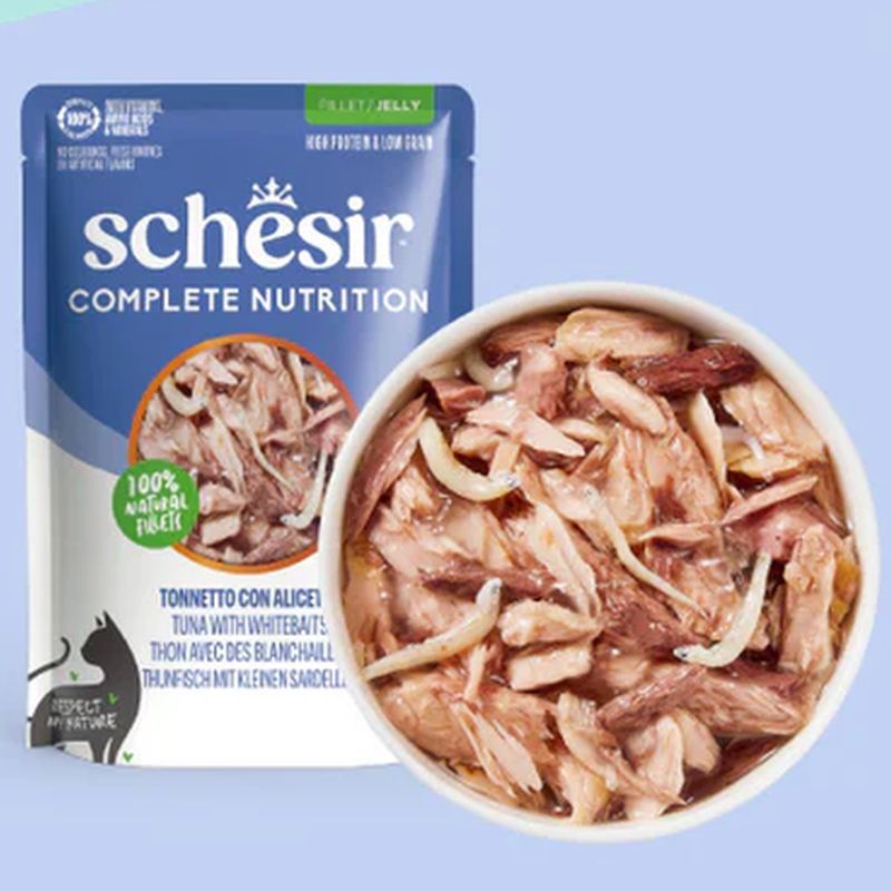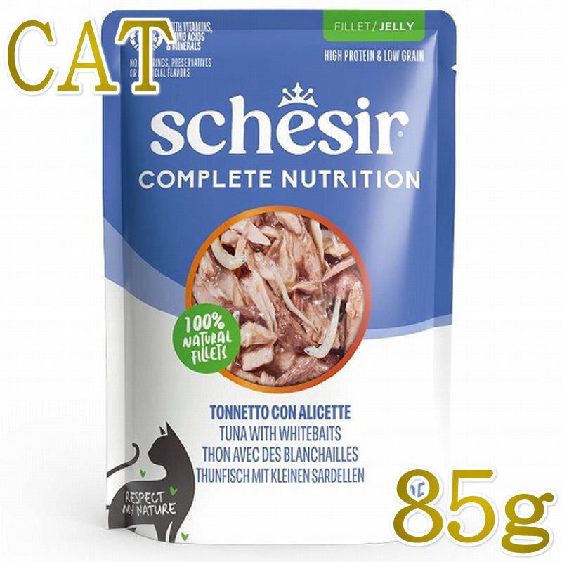 - > NEW 最短賞味2028.?・シシア 猫 ゼリータイプ パウチ ツナwithシラス85g scc46625成猫用総合栄養食キャットフードSchesir正規品