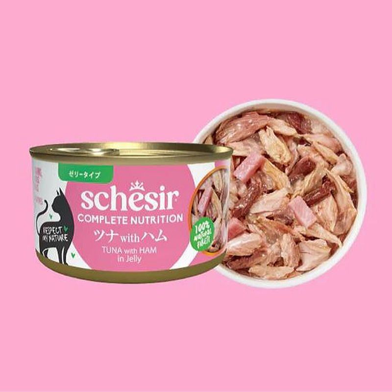 NEW 最短賞味2028.?・シシア 猫 ゼリータイプ ツナwithハム85g缶 scc50020成猫用総合栄養食キャットフードSchesir正規品