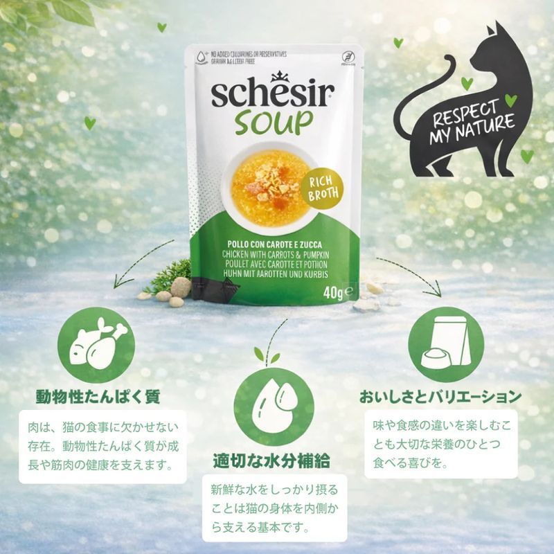 - > NEW 最短賞味2028.?・シシア 猫 スープ ツナwithキャロット&パンプキン85g scc25422全年齢猫用一般食キャットフードSchesir正規品